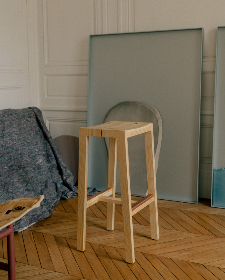 The Maasto Bar Stool is purposely reduced in form and concept: a simple ode to pine furniture that is light and strong, designed for casual dining in any setting. Our plywood features an exaggerated grain, producing a visually intoxicating super-pine aesthetic.