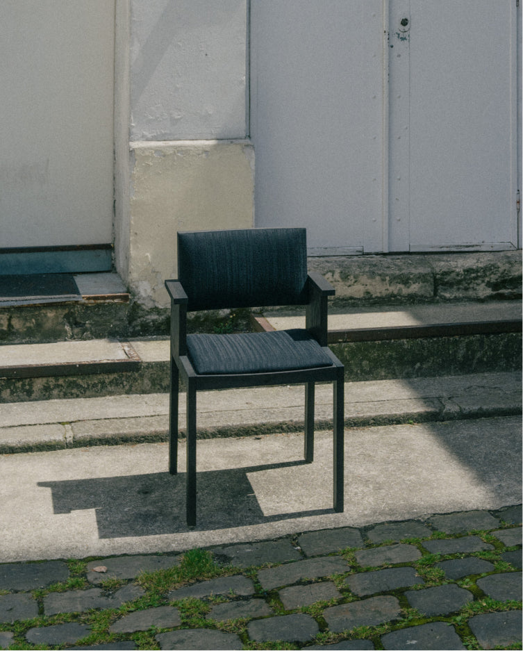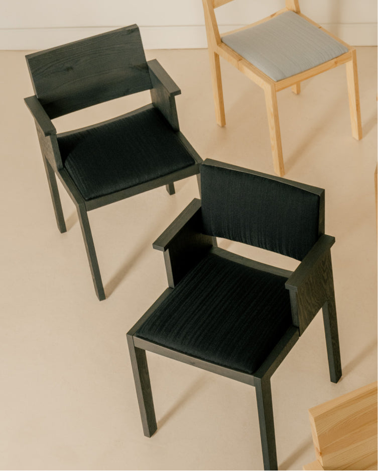 The Maasto Chair in Black features a deep black stain, unique to Vaarnii, through which the pines' distinctive grain remains pleasingly visible.