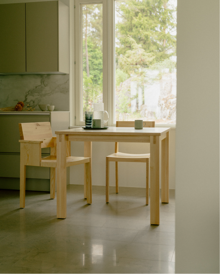 The Maasto wood dining table is an elementary yet engineered piece, designed for homes and public spaces alike. Simple and strong, built to last, the 016 Maasto Dining Table is pine furniture around which life can happen.