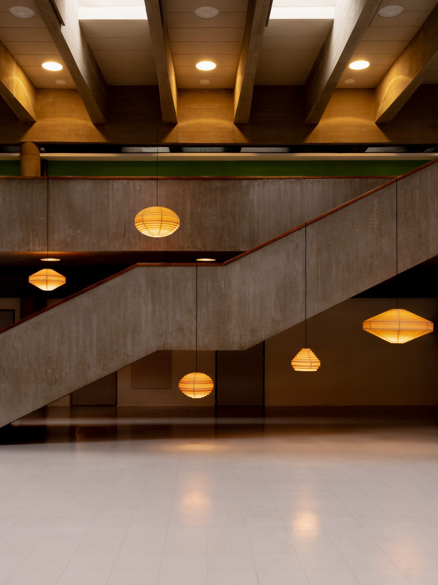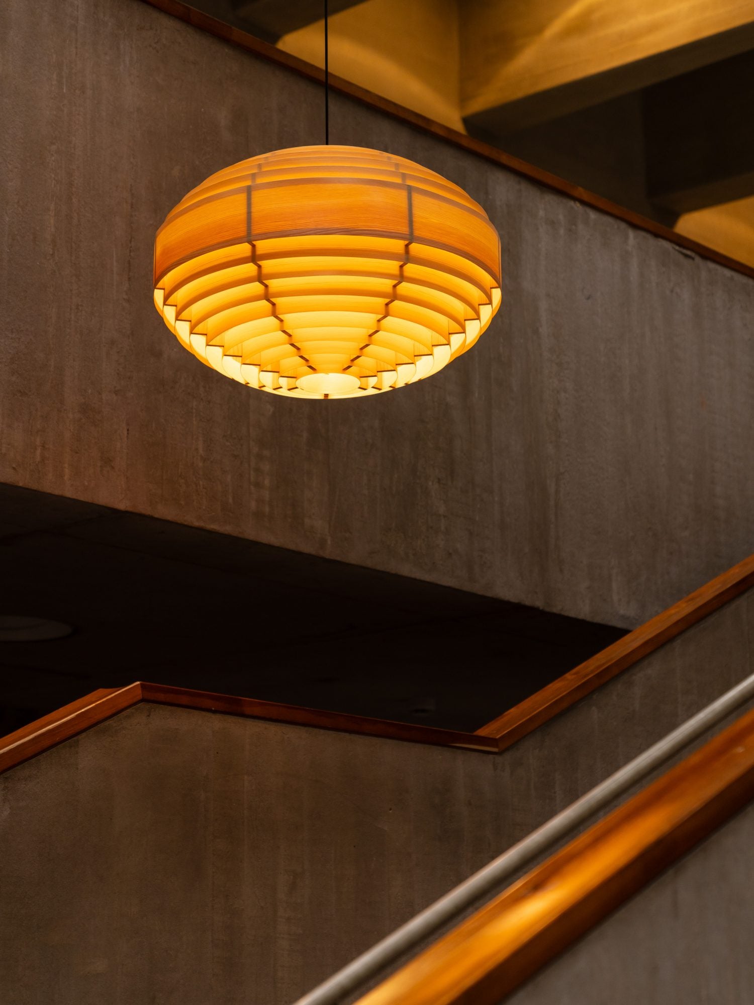 After re-engineering Hans-Agne Jakobsson’s characteristic 1960s lighting, Vaarnii understood that the design’s innovative lightweight construction could be pushed even further. This super-sized pendant uses the same concentric circles of veneer and sophisticated internal structure of solid Finnish pine as its smaller siblings, but tests the limits of lighting manufacture at scale.