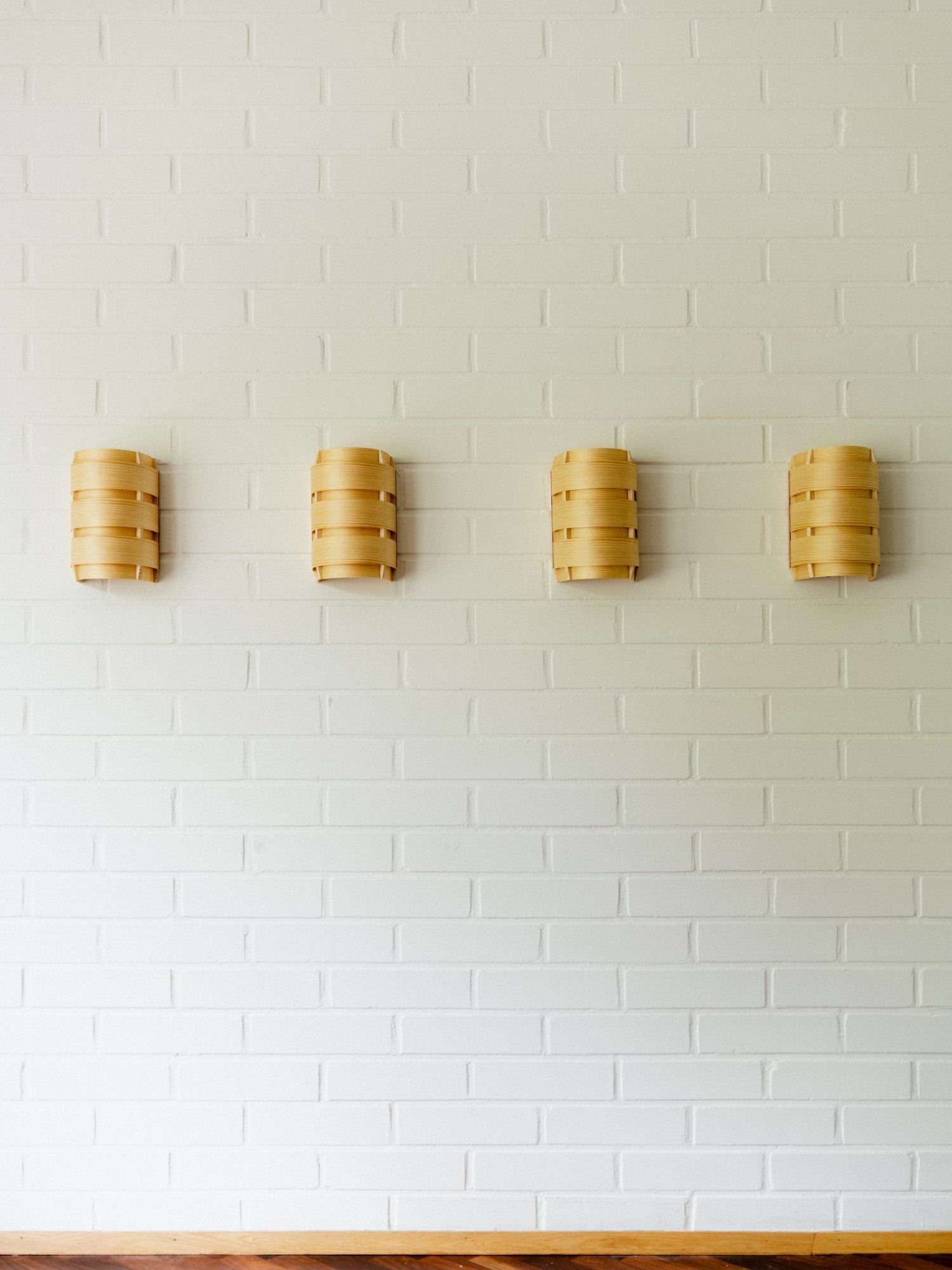 This smallest member of the family can be used singularly in small spaces or in rhythmic multiple—alone or in concert with other Hans pieces—wherever the warm glow of pine-filtered light is desired. The construction of these wall lights has been reengineered and uses the best quality pine veneer and sections of solid Finnish pine.