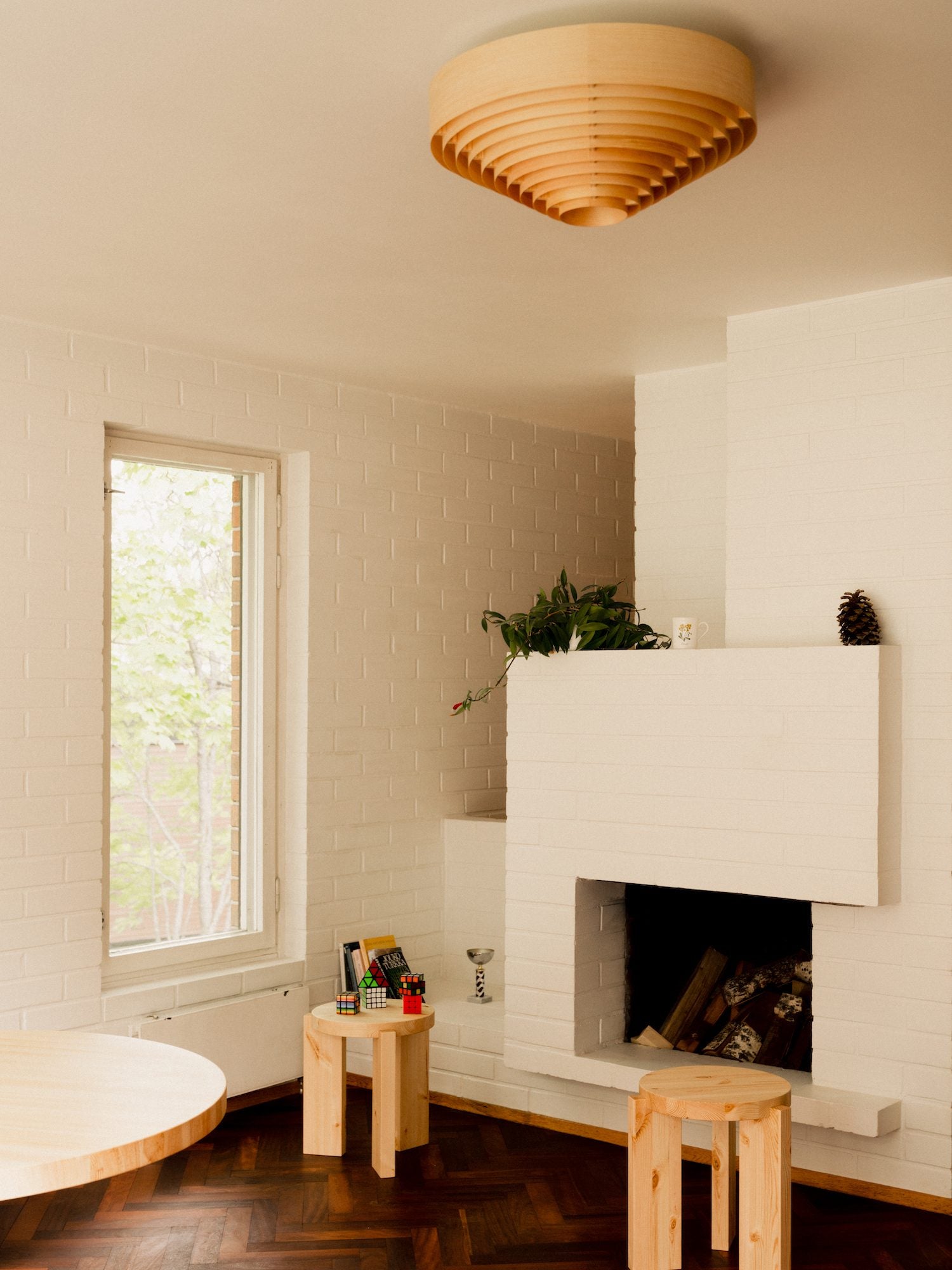 Scots Pine. Made from pine—a soft wood that evolves over time. The pine veneer will naturally deepen in colour as it ages, shifting from a pale tone to a rich, honeyed hue. Subtle variations and natural imperfections are part of the material’s charm and should be seen as signs of character, not flaws.
